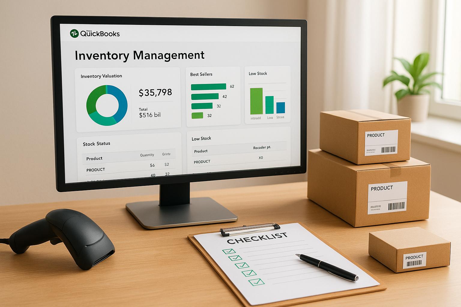 Checklist for QuickBooks Desktop inventory: setup, item organization, POs/receiving, physical counts, serial/lot tracking, reconciliation, and weighted-average costing.