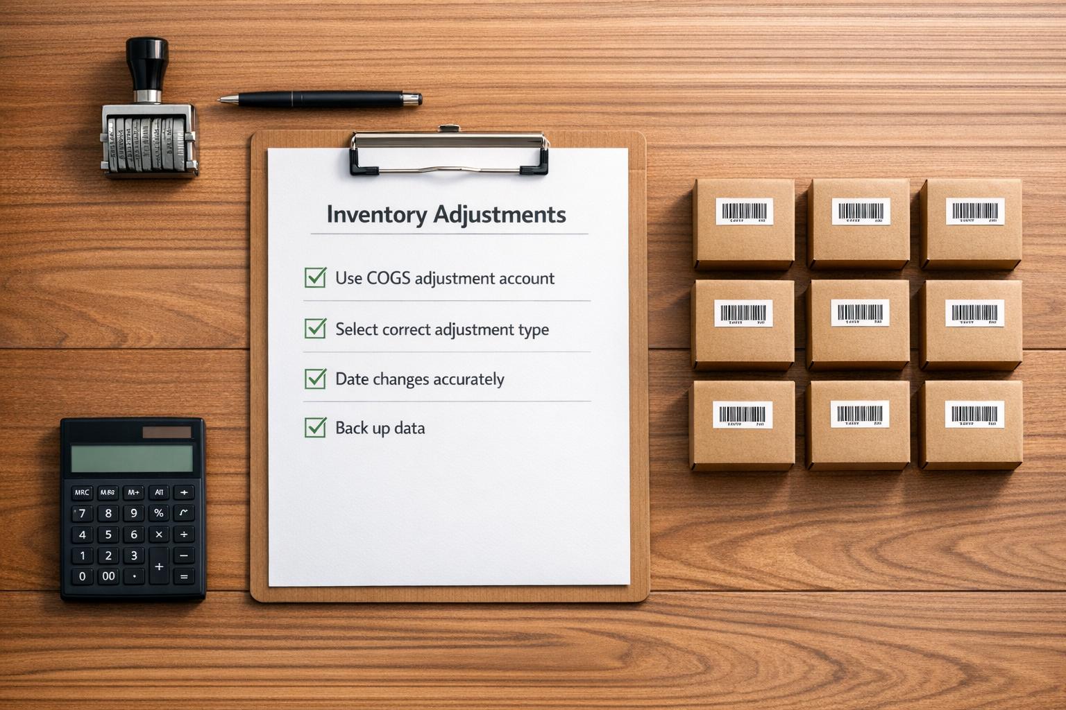 Prevent QuickBooks inventory adjustment mistakes—use a COGS adjustment account, pick the right adjustment type, date changes correctly, and back up data.